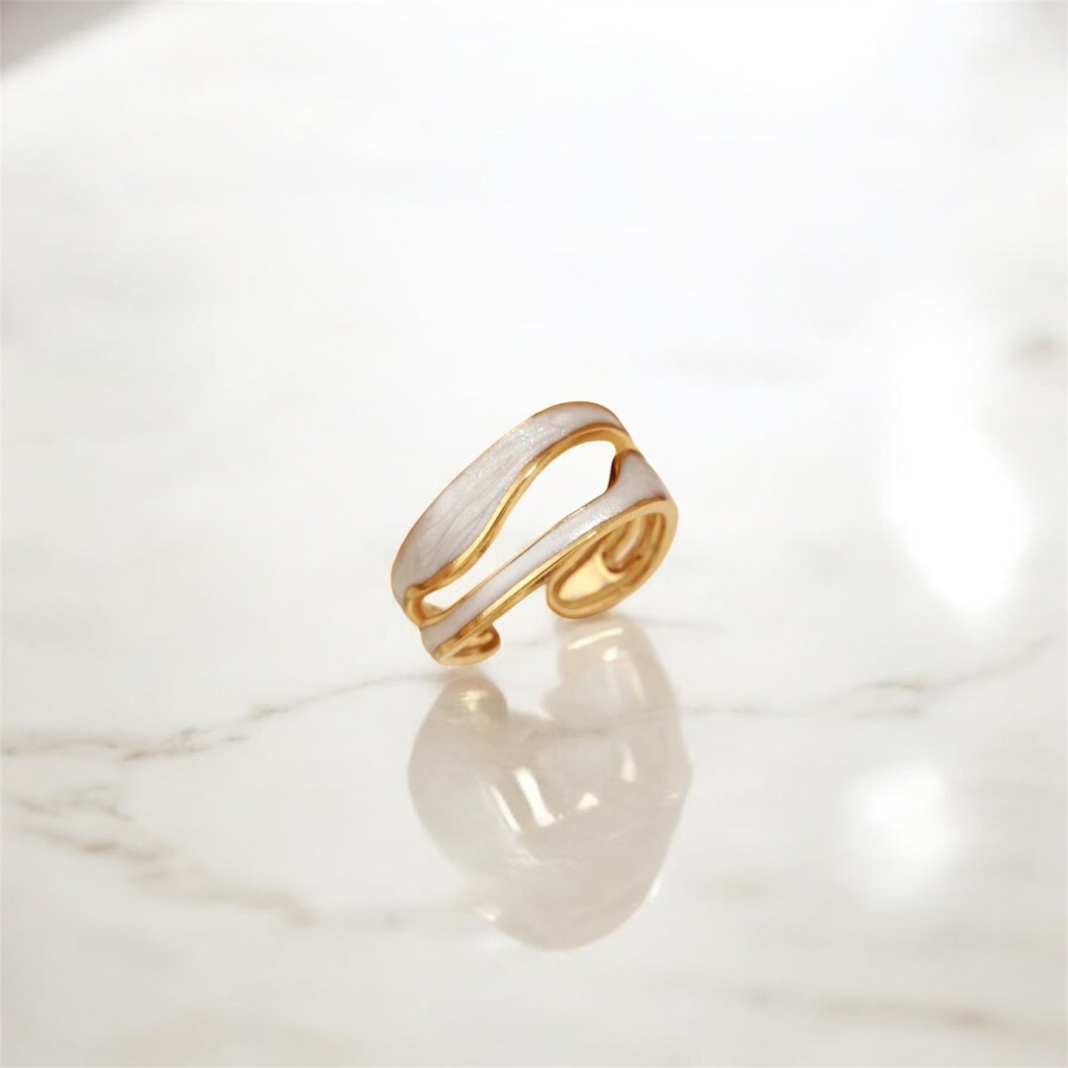 Double Waves White Marble Ring